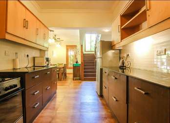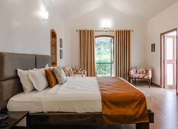 This private pool villa boasts an outdoor pool, garden space and sun terrace. The villa comprises of five spacious en-suite bedrooms that open up to a balcony. Each of the five bedrooms has a Queen Size bed, sofa, dresser, wardrobe and an electronic safe. On the ground floor is a bedroom, and a spacious kitchen-cum-living room that serves as a formal lounging area for a family gathering or dinner party. The first floor has a small landing with a sitting area and two bedrooms. The master bedrooms are on the second floor with a small balcony. All the bedrooms come equipped with an AC and LCD TV with satellite connection for each room. The kitchen is equipped with crockery, utensils, and a range of appliances such as a fridge, washing machine and microwave oven. Room service and daily housekeeping are included, along with iron with ironing board and a mini-library.