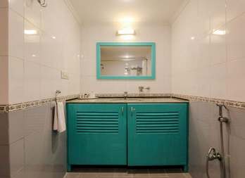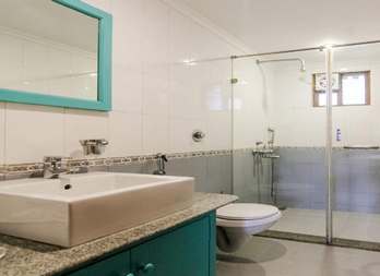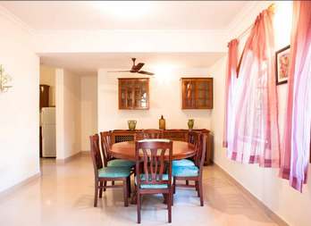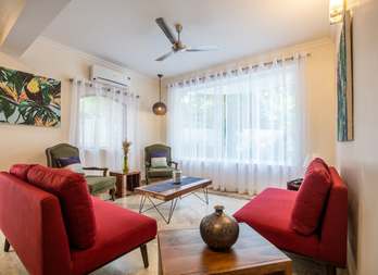 Tastefully designed, every inch of this massive 4-bedroom villa will make you feel at home in paradise. On the ground floor is a spacious kitchen-cum-living room that serves as a formal lounging area for a family gathering or dinner party and opens into a large, well-maintained garden. The pool side can serve as an informal gathering venue for a barbeque. All the bedrooms are with AC, grand terraces and en-suite luxurious bathrooms. All bedrooms have LCD TVs with Satellite TV, a dressing table, chairs, wardrobe and linen. Villa includes iron with ironing board, a mini-library, a kitchen that is fully equipped with crockery, utensils, appliances such as a fridge, washing machine and microwave oven. Room service and daily housekeeping are some of the facilities you will enjoy from this villa.