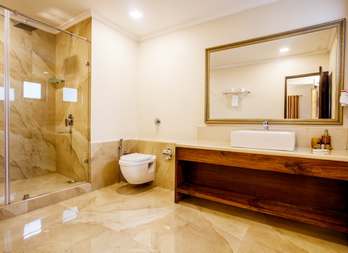 The One Bedroom Suites are a part of a villa having a hall, dining table, kitchen, balcony and serves as an ideal home away from home. The rooms are furnished with a double bed, a wardrobe fitted with an electronic safe, A/C, ceiling fans, functional kitchen fully equipped with crockery, cutlery, cooking utensils, a fridge, microwave oven, cooking range and an electric kettle. Other facilities include a washing machine, iron and ironing board. In addition to all of this, guests staying here are entitled to room service, daily housekeeping, the pool side bar and the two swimming pools.