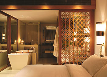 Located on the second level, all Loft Rooms are furnished in a contemporary wooden loft style. With a pitched roof that enhances the open, airy feel, it has a large private balcony looking out at swaying palm trees, providing pool and garden views. Includes a walk-in wardrobe, stand-alone bathtub, mini-bar, 40” LCD TV, Wi-Fi, electronic safe. Can accommodate 2 adults + 1 child.
