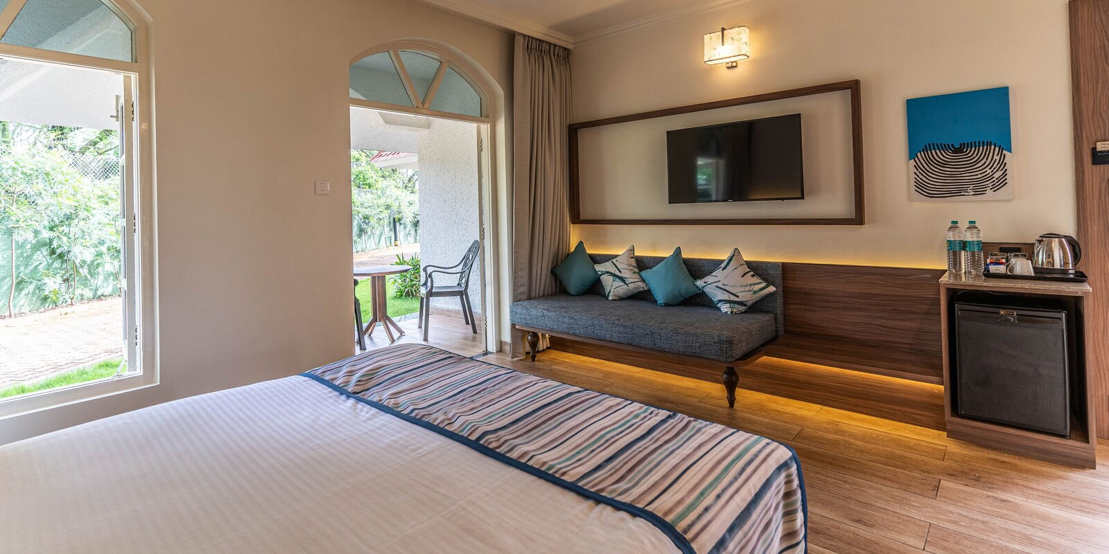 • Return Transfers from Dabolim airport by air-conditioned Sedan vehicle. From Mopa airport there will be an additional charge of Rs.3499/- (Per Way)