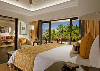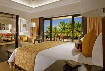 The Presidential Suite offers a villa-like accommodation. Located at the edge of a lagoon, the suite comes with a master bedroom, two adjoining bedrooms, living room, dining room and kitchenette. A private terrace with plunge pool, looking out to the golf course and ocean, a 24-hour, hands-on, intuitive butler service to take care of all your requirements, this room includes: access to high-speed internet (12 Mbps), tea/ coffee maker, Cable TV, wardrobe, bathtub, iron & ironing board, newspaper, mini bar, weight scale, DVD player, safety deposit lockers and car transfers.
