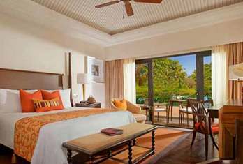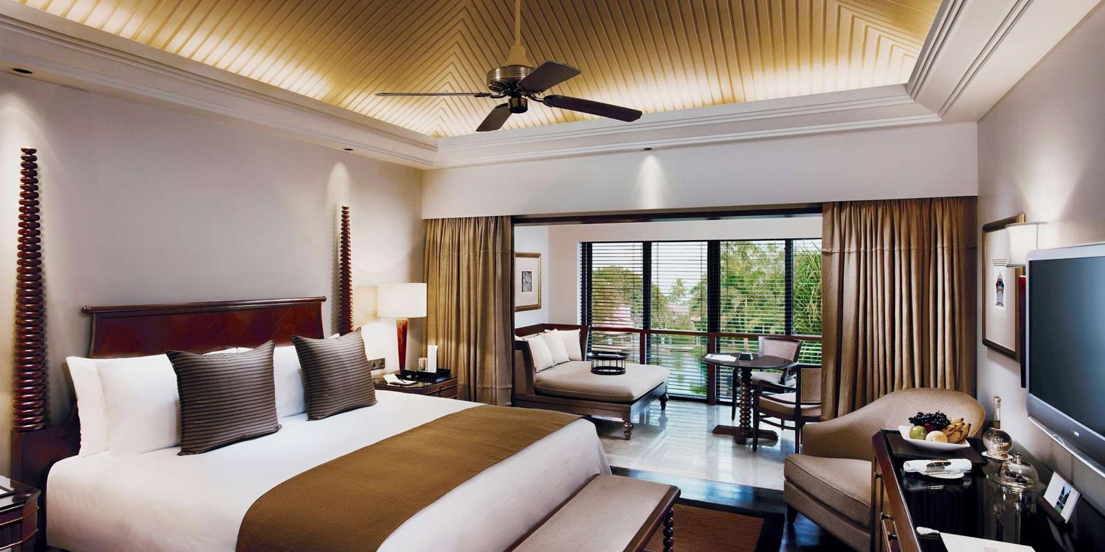 The Lagoon Terrace rooms have been recently upgraded and modernised, maintaining emphasis on elegance and thoughtful, intelligent styling. Each has a garden entrance, comes with a touch of Portuguese architecture, complete with wood-panelled floors, open-air private balcony overlooking lagoon filled with lotus blooms. Room include access to high-speed internet (10 Mbps), tea/ coffee maker, Cable TV, wardrobe, bathtub, iron & ironing board, newspaper, mini bar, weight scale, DVD player, safety deposit lockers.