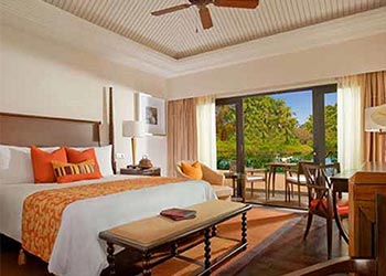 Rooms face lagoons filled with exotic lotus blooms. Ideal for a small family, these rooms come with an extra day-bed sitting area and an additional separate flat-screen TV for high-definition viewing time. The sitting area and the spacious bedroom. Room includes access to high-speed internet (10 Mbps), tea/ coffee maker, Cable TV, wardrobe, bathtub, iron & ironing board, newspaper, mini bar, weight scale, DVD player, safety deposit lockers, day bed overlooking lagoon, work desk.
