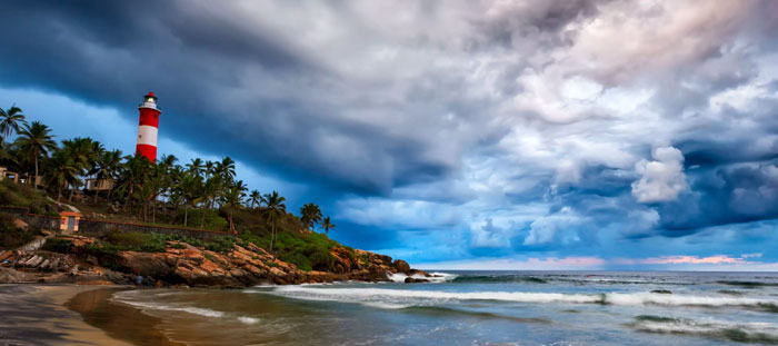 Tourist Destinations: The Kovalam beach spread over 4 kms can be visited from September to March, the best possible time. Mainly there are two popular beaches in Kovalam along with many other private beaches. One of the Kovalam beaches is Eve's beach, a semi-circular one, well known for its secluded location and its relatively good beach area. Another famous Kovalam beach is that of Lighthouse beach having a lighthouse belonging to the British period.