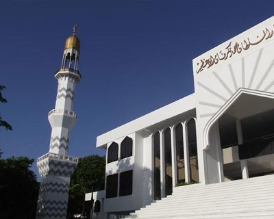 The Grand Friday Mosque lies within the grounds of the Islamic Centre. The biggest mosque in the Maldives and among the biggest in South Asia, it has a capacity for over 5,000 people. The simple-yet-stunning modern structure was opened in 1984 by former president Maumoon Abdul Gayoom. Situated just behind the jetties and Jumhooree Maidhaan Park, the grand golden dome of the mosque and the towering minarets of the Islamic Centre’s entrance are the most striking features of the Malé skyline. The mosque also usually is the first landmark visitors see when travelling to the city by boat. The interior walls of the Grand Friday Mosque feature exquisite woodcarvings and Arabic calligraphy. Visitors are able to enter the mosque outside of prayer but cannot take photographs and must wear respectful clothing.